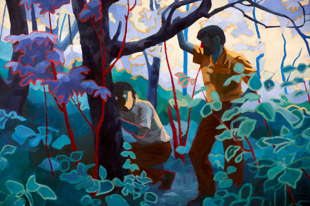 Dutch artist Myrthe Biesheuvel paints places: Landscapes with a surrealist, dreamlike and sometimes dark quality to them. These are places to explore or hide in. To feel liberated in or trapped. Seeing them as places of liminality, between what we accept as reality and a deeper unconscious dimension, she seeks to offer visitors an escape. A display of 10-13 plein air and surrealistic paintings creates a moment of solace and contemplation for visitors to deepen their connection with the natural world and inner self.